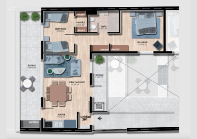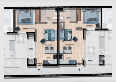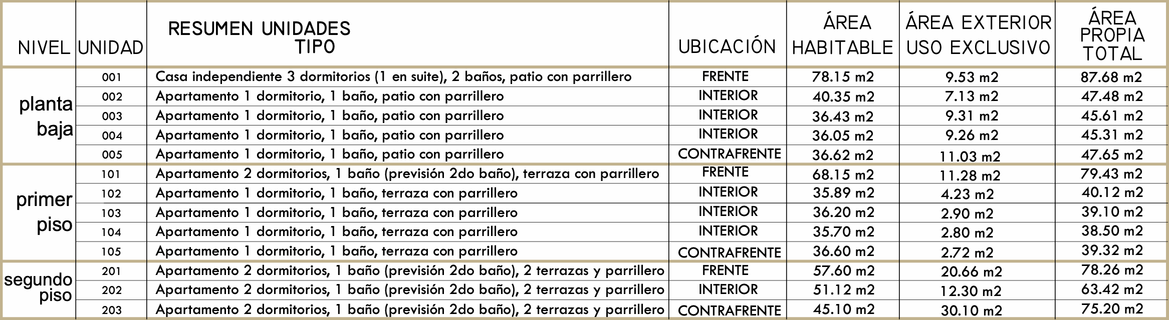 El proyecto cuenta con 3 niveles, con una totalidad de 13 unidades: