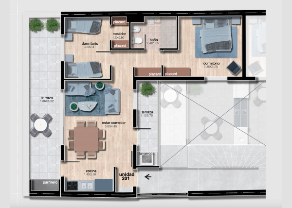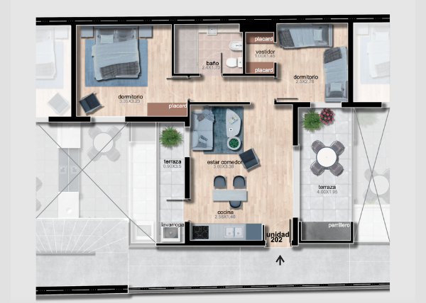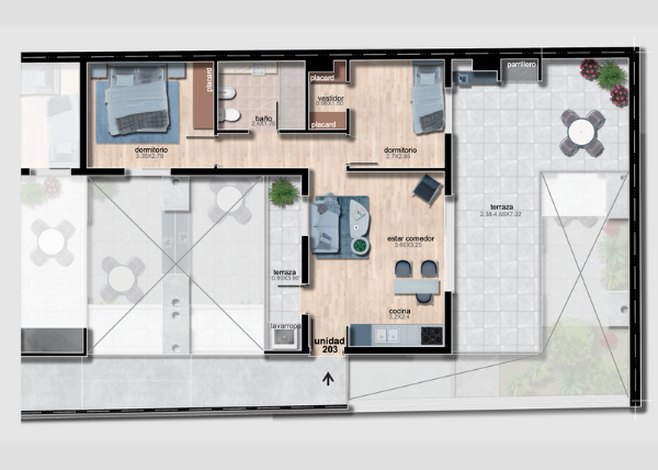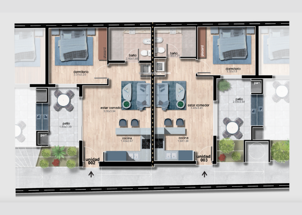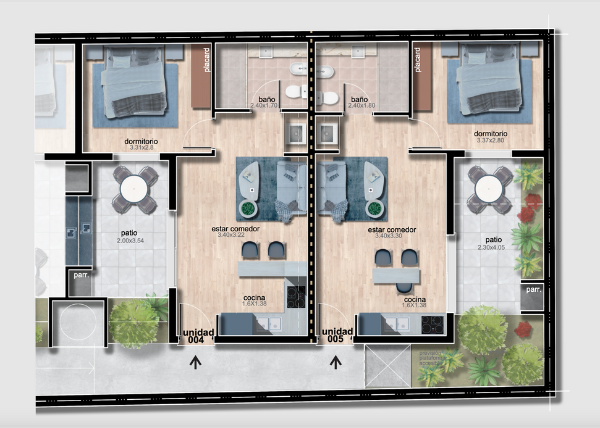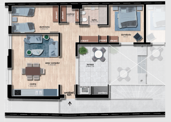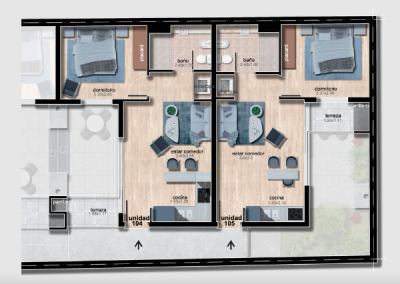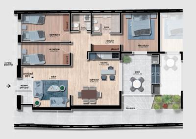 Las unidades están concebidas con espacios amplios, equipamiento completo y áreas al aire libre con parrillero de uso exclusivo. Todas son convertibles en apartamentos accesibles. Se prioriza la seguridad, contando con rejas y cámaras con visor.